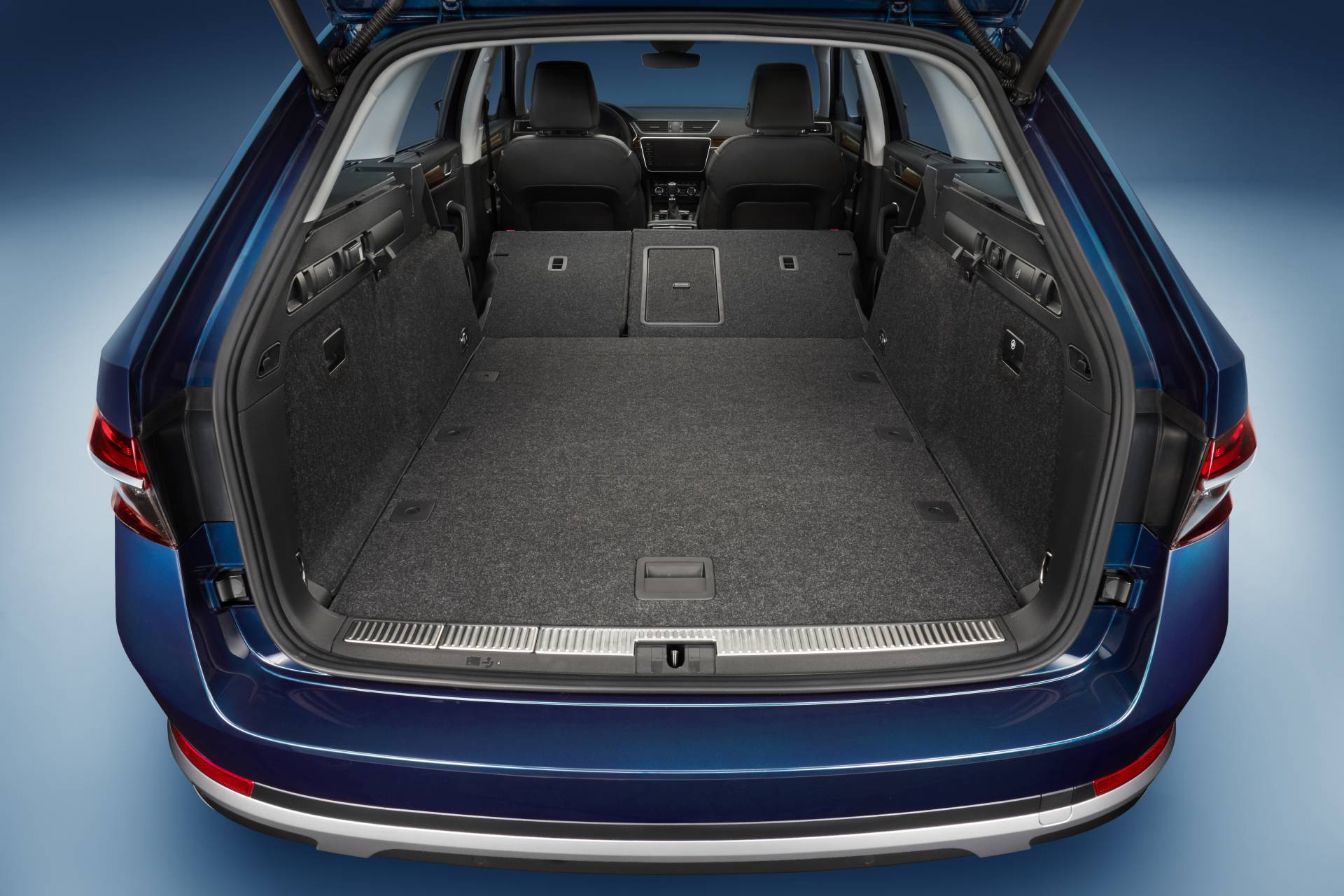 Skoda Superb Scout vine cu un portbagaj cu o capacitate de 660 de litri, iar rabatarea banchetei creează un spațiu de 1.950 de litri. Funcția Virtual Pedal de deschidere a ușii portbagajului prin trecea piciorului pe sub bara spate, poate fi comandată opțional.