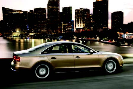O altă soluție de înaltă tehnologie prevăzută la bordul noului model A8 o reprezintă farurile construite în întregime cu LEDuri, ce utilizează diode emițătoare de luminâ pentru toate funcțiile de iluminare. Optica revoluționară utilizată pentru aceste faruri reprezintă un progres față de modulele de lumină tubulare utilizate frecvent în prezent.