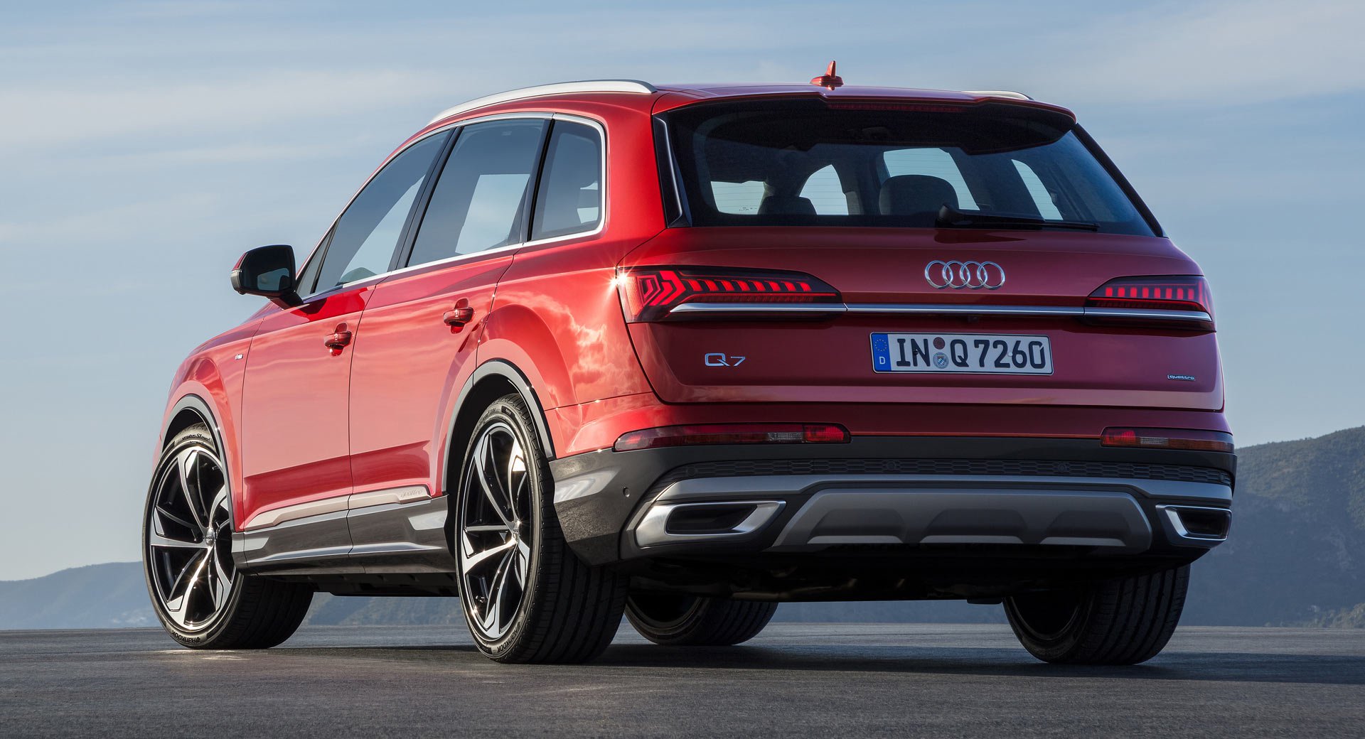 Noul Audi Q7 primește opțional și faruri HD Matrix LED cu Audi laser light, care flanchează grila octagonală cu șase lamele. Apar prize de aer mai mari, ca subliniază natura agresivă a modelului, confirmată, în mod deosebit, de pachetul exterior S line, oferit opțional. Acesta aduce jante de 19 inci și un scut cu look sportiv în partea posterioară.