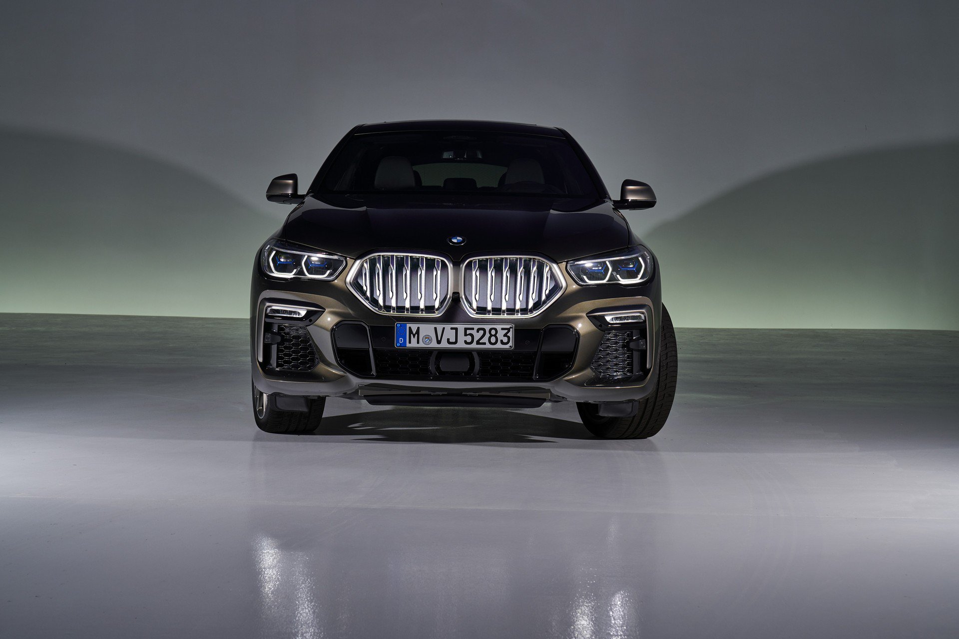 Și X6, ca și X7 și Seria 7, primește o grilă uriașă. În premieră, SUV-ul coupe este disponibil cu o grilă iluminată. Aceasta se aprinde la deschiderea și închiderea mașinii, dar șoferul poate porni și opri sistemul manual. Grila poate rămâne aprinsă și în timpul deplasării.