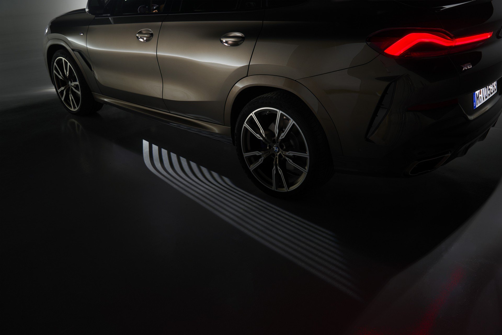 Grila este flancată de farurile BMW Laserlight (opțional). Din profil, se remarcă acoperișul plonjat, de coupe, și jantele de 19 inci oferite standard, în timp ce jante de 20, 21 și 22 de inci pot fi comandate opțional. BMW X6 M50i și M50d primesc standard jante de 21 de inci.