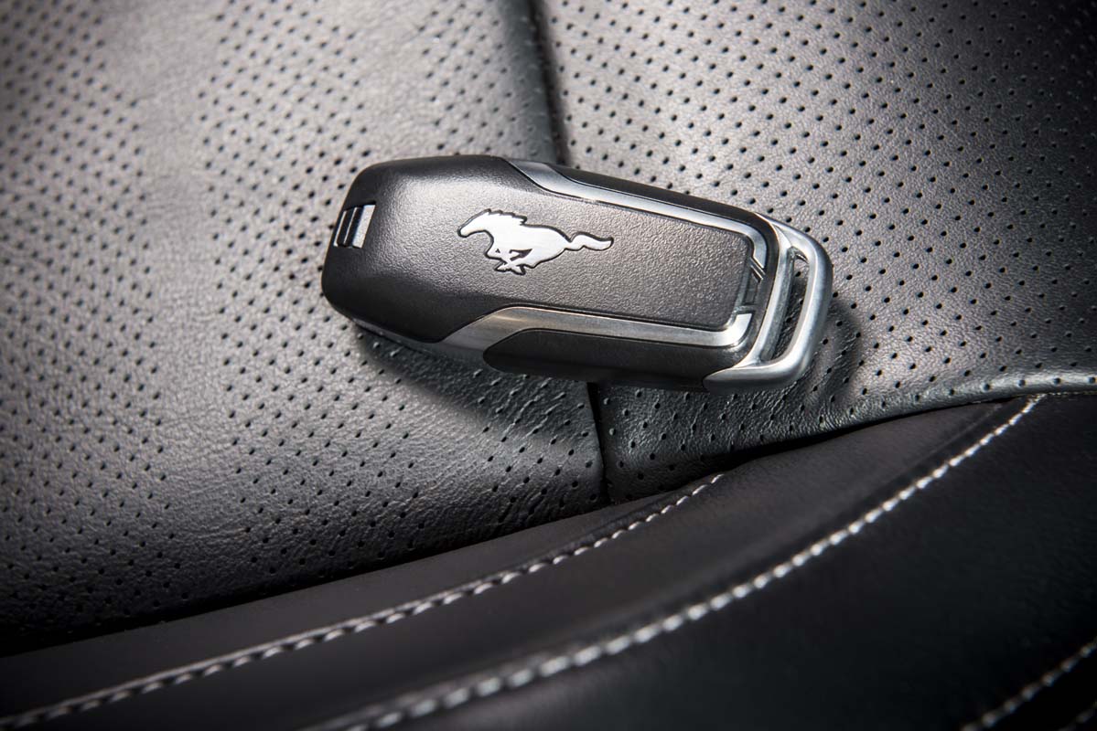 Odată urcat la bord începi să realizezi că, deşi este un produs global Ford, deci a fost dezvoltat ţinând cont de dorinţele şi aşteptările clienţilor de peste tot, inclusiv Europa, atmosfera este foarte americănizată. Pe lângă volanul tribut dai peste comenzile semnalizatorului grafate direct de pe Focus. Planşa de bord masivo-opulentă găzduieşte o plăcuţă pe care-ţi este amintit frumos că Mustangul este ˝since 1964˝.