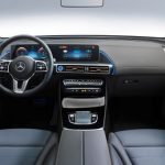 Interiorul lui EQC confirmă caracterul premium, cu o paletă de culori unică, materiale cum ar fi pielea, aluminiul și lemnul, dar și materiale reciclabile. Viitorul șofer de EQC poate alege o tapițerie Sunnyvale în albastru indigo sau bej. Electric Art și AMG Line sunt liniile de echipare disponibile.