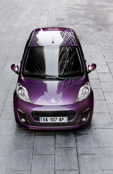 Noul panou frontal inferior are protecții de contact – unul frontal și două poziționate în lateral – ele fiind atât estetice, cât și utile în condițiile de sofat urban. Nu în ultimul rând, trebuie remarcate LED-urile pentru iluminarea diurnă permanentă, acestea accentuând protecțiile laterale, dar și proiectoarele de ceață, în cazul versiunilor de echipare ce conțin acest accesoriu. În plus, paleta de culori a fost extinsă cu o nouă nuanță, numită sugestiv ”Plum”, modernă, atractivă, ce se asortează perfect cu caracterul lui Peugeot 107.