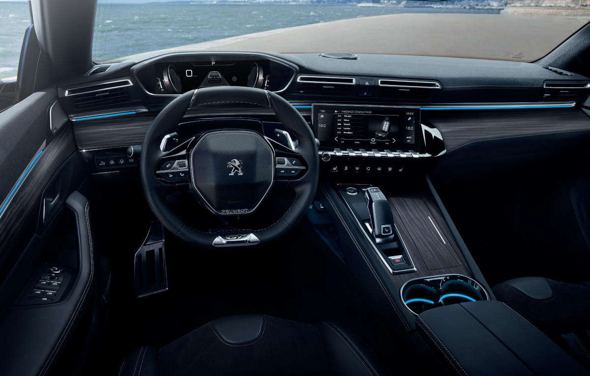 Habitaclul lui 508 este echipat cu sistemul PEUGEOT i-Cockpit® ce constă într-un ecran tactil HD capacitiv de 10ʺ, în format 8/3 și head-up display cu ecran digital de rezoluție înaltă de 12.3ʺ.
