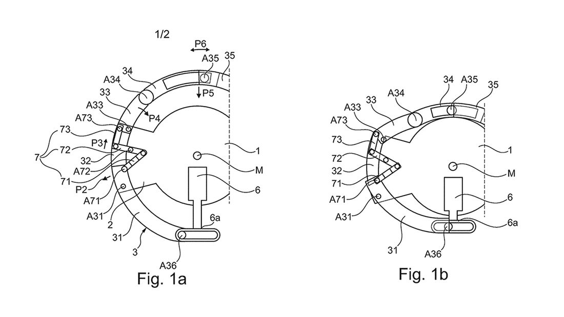 La noul volan BMW care își schimbă forma, datorită articulației speciale, lățimea nu crește când volanul ia forma ovală (vezi desenul).