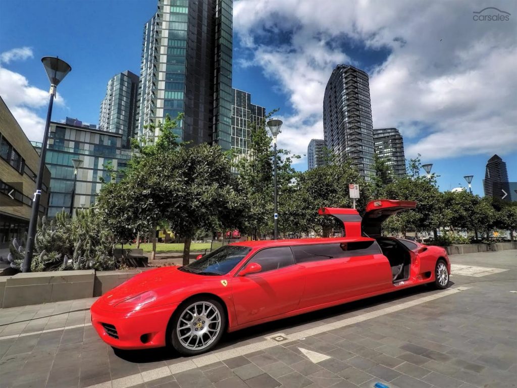 Pentru cine își dorește un automobil cu adevărat bizar, un site de anunțuri auto din Australia are la vânzare o limuzină alungită Ferrari 360 Modena.