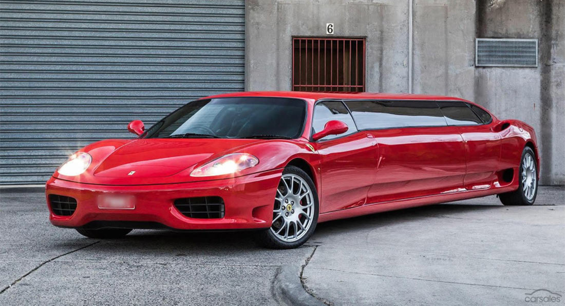 Pentru cine își dorește un automobil cu adevărat bizar, un site de anunțuri auto din Australia are la vânzare o limuzină alungită Ferrari 360 Modena.