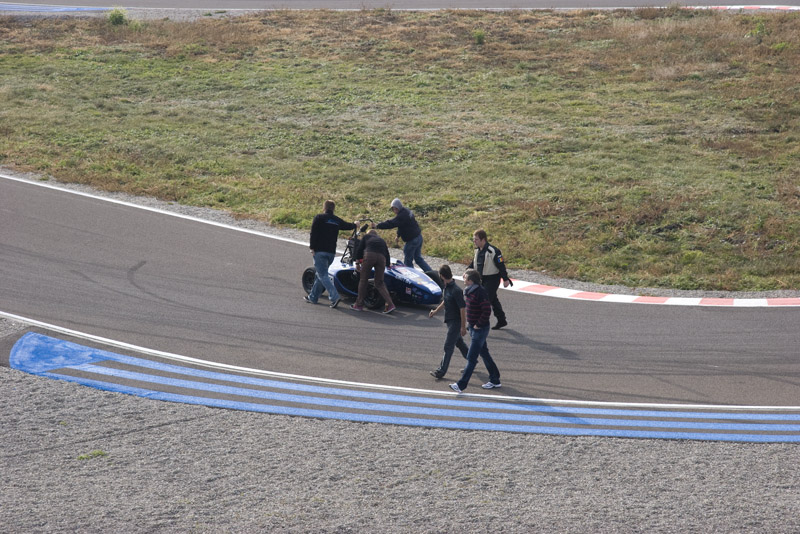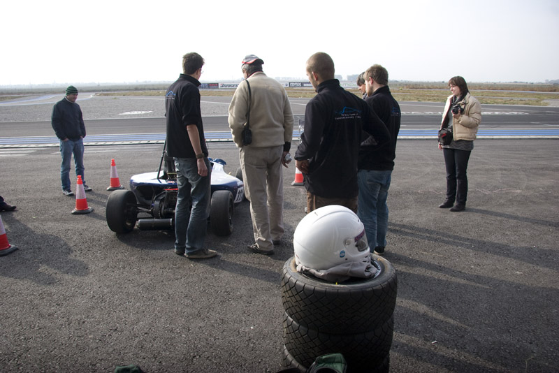 După un sezon reușit, cu multe urcușuri, dar și cu unele coborâșuri care au alimentat excelent setea de reușită, băieții ne-au adresat invitația să participăm la o sesiune de teste cu simpatica “bombă”, pe Prejmer Circuit, în apropierea orașului de la poalele Tâmpei. Am acceptat și am așteptat momentul cu mai mult entuziasm decât aș putea reproduce în cuvinte. Ajunși la fața locului am asistat la ultimele pregătire înainte de pornirea bestiei. Odată pus contactul, am ascultat cu o plăcere nebănuită sunetul ascuțit al motorului (de motocicletă) Honda.
