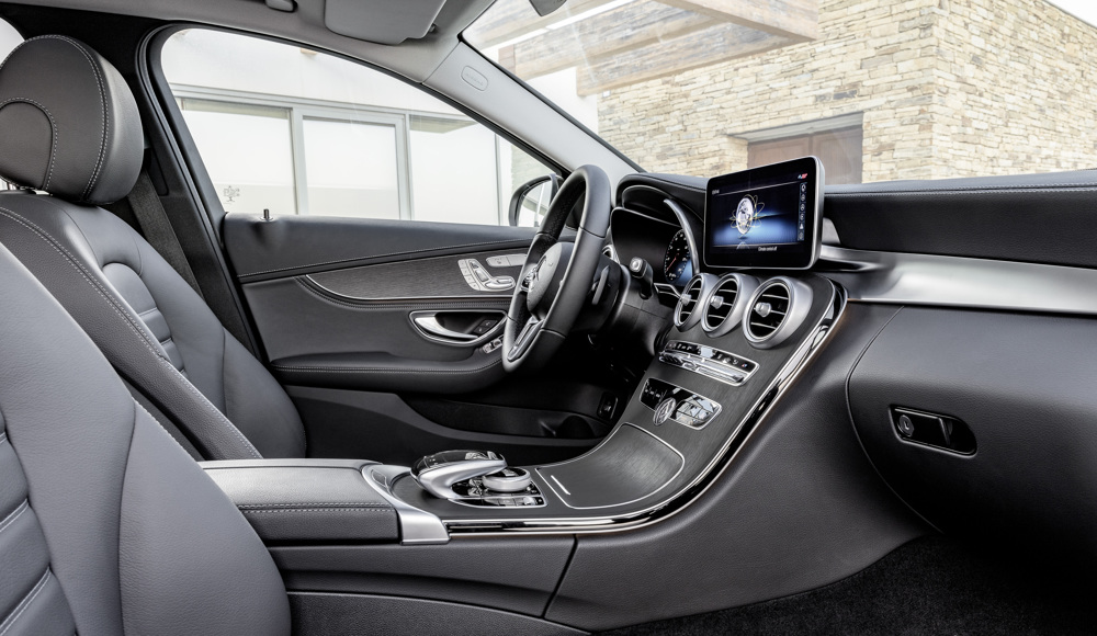 C-Class devine digital, dar își păstrează imaginea clasică, primind la interior finisaje cu lemn de nuc și stejar de culoarea antracitului. Noi în gama Clasei C vin finisajele magma grey/black și saddle brown, în cazul în care cumpărătorul bifează căsuța AMG Line. Acesta poate comanda și Pachetul Multicontour Seat Package, cu suport lateral și lombar, care permite reglajul individual al scaunelor cu ajutorul unei pompe pneumatice. Camera de aer asigură o mișcare armonioasă și oferă masaj lombar.