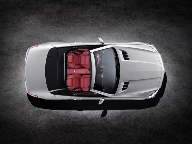 Din punct de vedere estetic, noul SL se situeaza undeva la mijloc intre SLK si SLS. Grila radiatorului de mari dimensiuni se aseamana cu cea a SLS-ului, in timp ce blocurile optice fata amintesc de cele folosite de SLK. Pe total pachetul arata destul de omogen, chiar agresiv pe alocuri.