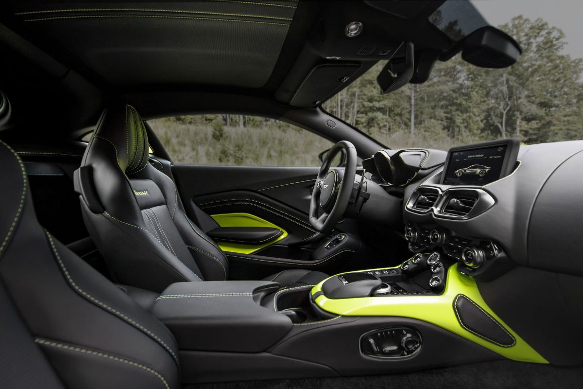 Deoarece limba germană stă la baza partiturii tehnice, Aston Martin preluând de la Mercedes-AMG inclusiv arhitectura electrică și sistemul de infotainment Comand (subtil integrat în planșa de bord exotică, asemănătoare cu cea a fratelui mai mare DB11), engleza este sursa de inspirație pentru designul noului Vantage.