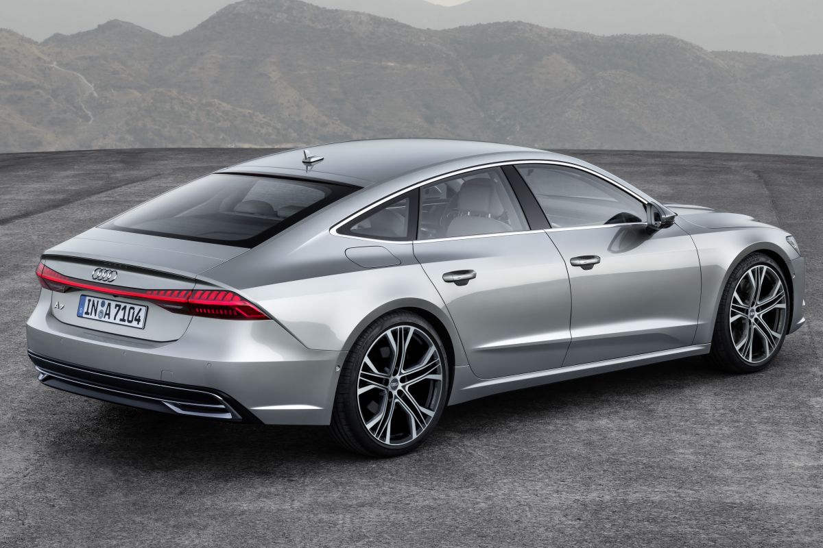 Deși platforma tehnică este complet nouă (arhitectura modulară MLB Evo, partajată cu A8 și viitoarea generație A6 – n.r.), dimensiunile caroseriei nu s-au schimbat: noul A7 are o lungime de 4,97 metri, o lățime de 1,91 metri și o înălțime 1,42 metri. Ampatamentul măsoară 2,93 metri. Roțile disponibile pot avea un diametru de până la 21 de inch. Partea din spate este ușor retrasă, stopurile cu cele 13 segmente LED integrate conectate printr-o bandă luminoasă, în stilul celei de la noul Bugatti Chiron. Eleronul spate escamotabil se ridică peste 120 km / h. Farurile și luminile din spate prezintă o coregrafie inedită atunci când deschideți și închideți mașina.