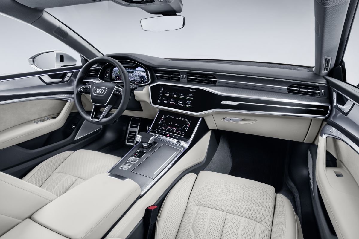 A7 se inspiră din punct de vedere al conceptului de operare de la A8. Un display de 10,1 inch este integrat în consola centrală. Funcțiile esențiale sunt controlate prin intermediul interfeței MMI Touch Response: două ecrane tactile înlocuiesc comutatorul rotativ anterior, simulând butoane și comutatoare virtuale. Afișajul superior pentru infotainment completează un afișaj de 8,6 inci situat dedesubt și dedicat climatizării, funcțiilor de confort și introducerii de text. Pentru o taxă suplimentară, se oferă un display de 12,3 inch în locul ceasurilor de bord clasice, plus un head-up display full-color care proiectează informații în câmpul vizual al șoferului.