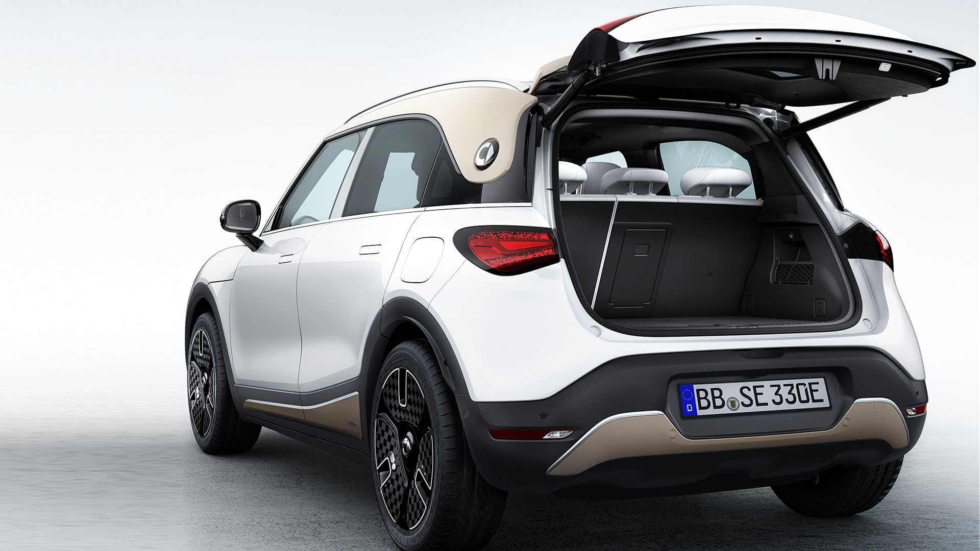 Este cel mai mare Smart scos vreodată pe piață. Are 4,27 m lungime (față de 4,3 m la e-2008) și un ampatament de 2,75 m (vs 2,60 m). Deci este un pic mai scurt și are un ampatament mai mare decât francezul. Mai mult, oficialii mărcii spun că spațiul interior este mare cât al lui Mercedes-Benz Clasa E! Portbagajul are o capacitate de 411 l, iar în față mai este un spațiu de 15 l.