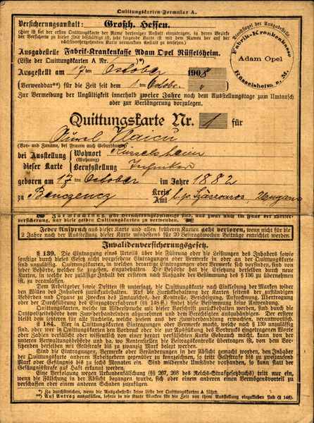 Istoria Opel are numeroase momente de tangenţă cu România, într-un secol de prezenţă neîntreruptă. Unul dintre ele este angajarea lui Aurel Vlaicu la fabrica de la Rüsselsheim, în calitate de inginer. Aviatorul român a lucrat la Opel în 1908, după finalizarea studiilor tehnice de la Budapesta şi Munchen, iar documentul care doveşte acest lucru este fişa sa medicală. În 1908, acest serviciu dedicat angajaţilor fusese deja externalizat de Opel unui furnizor profesionist. Documentul aparţine Muzeului Aviaţiei din Bucureşti şi este expus în spaţiul dedicat lui Vlaicu.