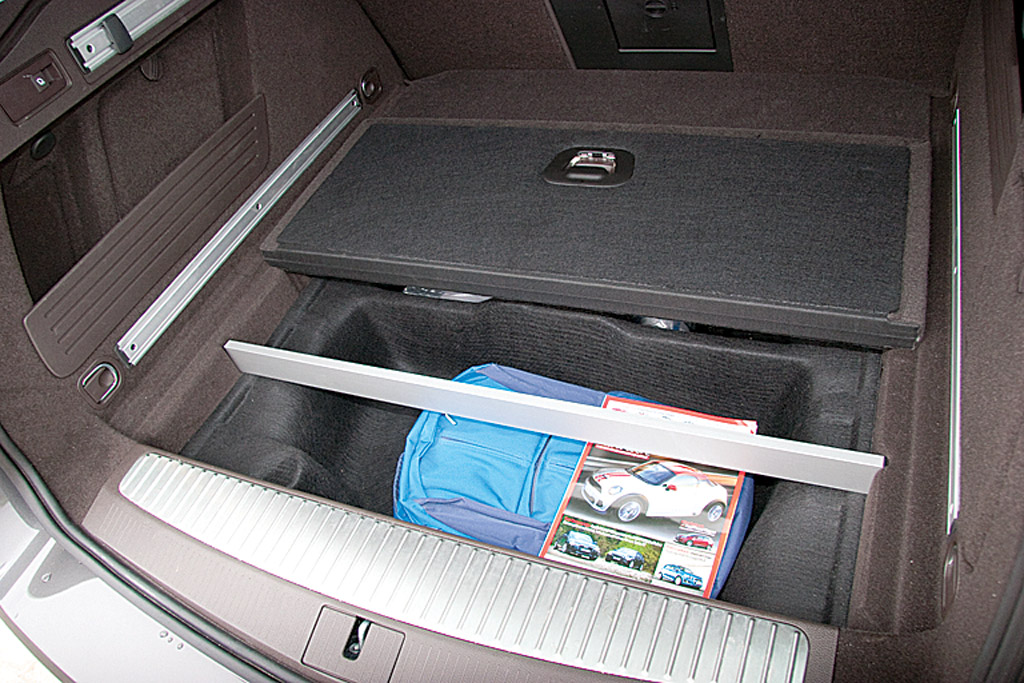 În cele mai multe cazuri, folosim doar o mică parte din portbagaj, mai ales în cazul cumpărăturilor de weekend sau de la supermarket. Sacoşele pot fi ancorate prin sistemul de şine pe care culisează alte sisteme de ancorare foarte utile pentru lucrurile fragile. În locul roţii de rezervă am găsit un kit pentru pană şi încă un spaţiu pentru depozitat de dimensiunea unui portbagaj de Opel GT.