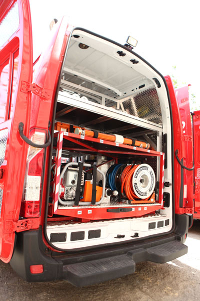 Modelele Movano utilizate au configuraţia L3H2 (lungimea de 6.198 mm şi înălţime 2.488 mm) şi sunt dotate cu motoare diesel 2.3 CDTI şi tracţiune spate. Maşinile, a căror dotare interioară a fost realizată în România, au echipamente de descarcerare Holmatro, iar interiorul a fost compartimentat astfel încât să permită accesul facil pentru utilizatori, ţinând cont totodată de ergonomia maşinii şi a utilajelor. Tipul caroseriei alese este VAN cu uşi culisabile, atât pe stânga cât şi pe dreapta.
