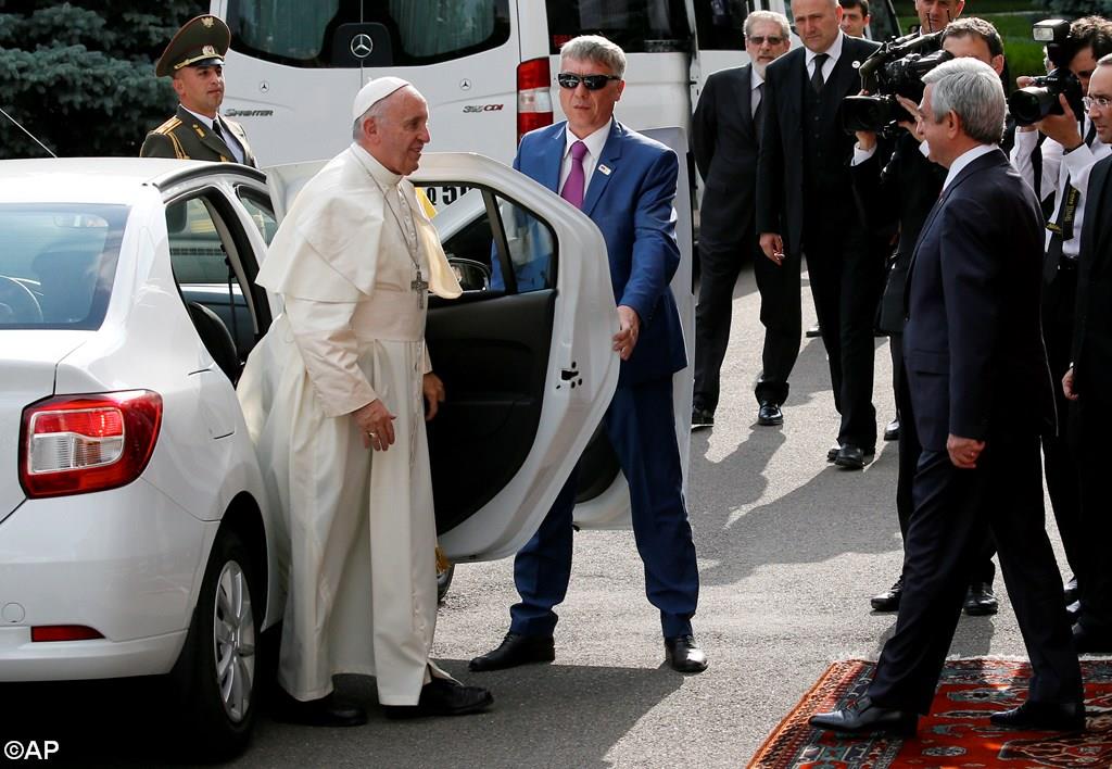 Trebuie să recunosc: am simțit o undă de mândrie cu iz naționalist, văzând filmul în care Suveranul Pontif cobora dintr-un Logan alb pentru a se întâlni cu președintele armean Serzh Sargsyan. Și nu pentru că Armenia nu și-ar fi permis să-i pună la dispoziție un autoturism ”cu pretenții” sau poate chiar unul blindat. Dat fiind stilul de viață simplu al Papei și imaginea populară pe care o are, sunt convins că Loganul a fost propria-i dorință.