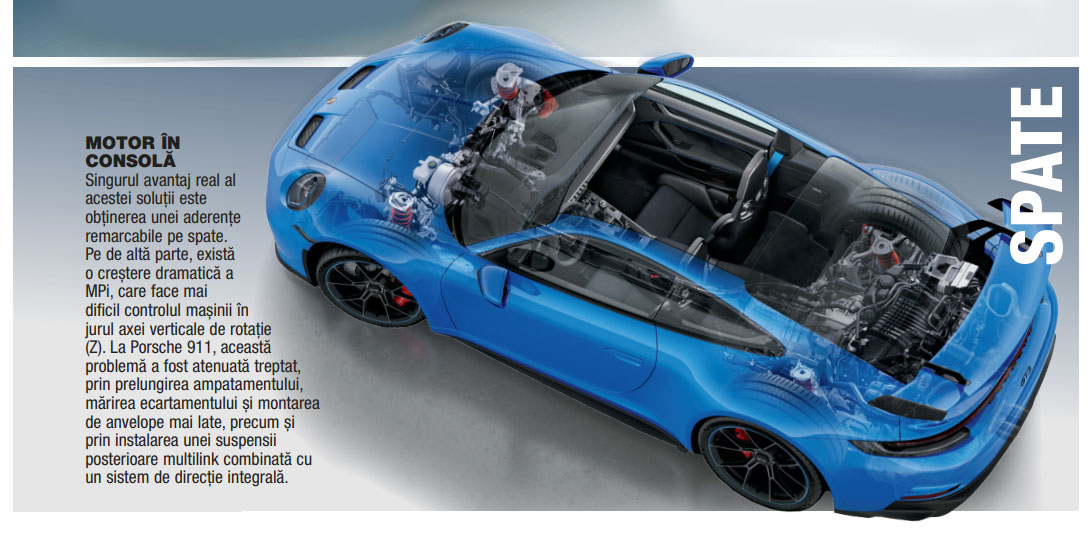 Ei bine, o mașină rapidă în reacții și deci plăcută de condus, trebuie să aibă un moment polar de inerție cât mai mic. Și asta se întâmplă dacă cele mai mari mase sunt grupate… ai ghicit, în jurul centrului de greutate. Rețeta ideală este, din nou, a monopostului de Formula 1 despre care vorbeam mai sus. Foarte important e ca motorul, care are una dintre cele mai mari mase, să fie situat central în spatele scaunelor. Nu e o coincidență că Ferrari, Lamborghini, Lotus și McLaren folosesc această dispunere la cele mai performante modele pe care le au în gamă.