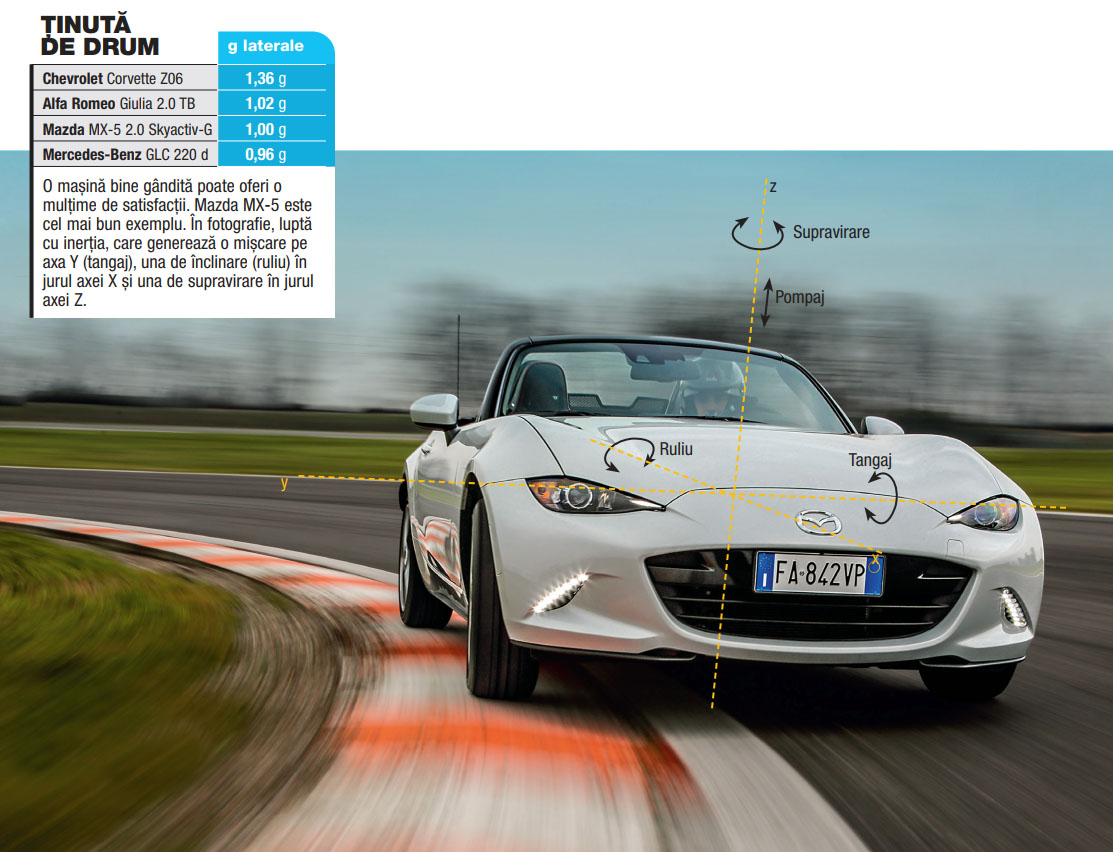 Combinația acestor elemente naște acele senzații care ne fac să gândim „uite, frate, ce mișto se mișcă mașina asta!“ sau „ia s-o las mai moale, să n-o pun pe ștergătoare“. În cele din urmă, ce e plăcerea de a conduce? Cum trebuie să reacționeze mașina, pentru a excita creierul și a-l face să gândească: „Isuse, mai vreau o tură“? Deci, să intrăm un pic în miezul problemei.