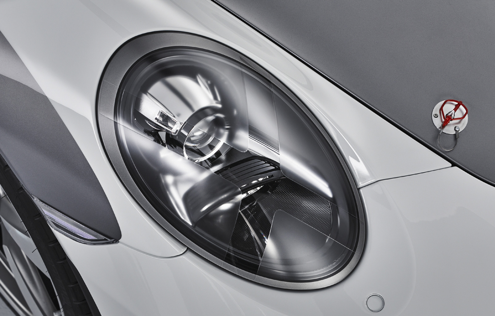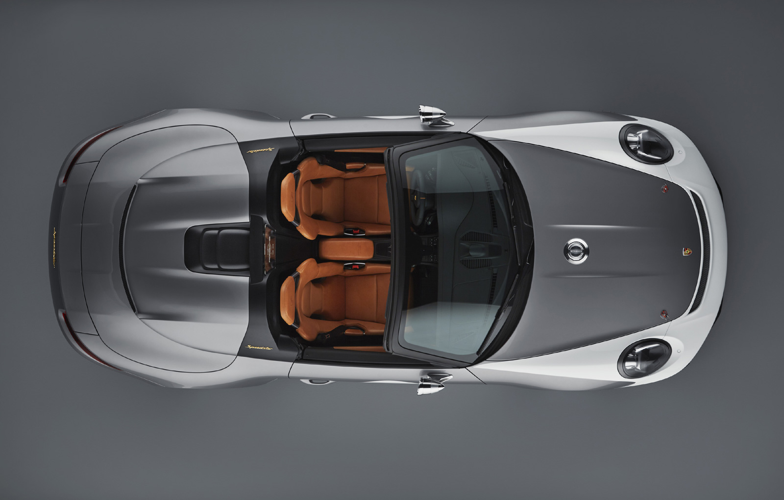 Conceptul caroseriei a fost preluat de la 911 Carrera 4 Cabriolet, deși aripile sunt construite din materiale compozite ușoare. Vopseaua este tradiționalul GT Silver, care amintește de perioada de început a companiei în motorsport. Farurile integrează suprafețe transparente și opace pentru un efect impresionant, din nou o aluzie la faptul că mașinilor aliniate la startul competițiilor li se acopereau farurile cu bandă adezivă pentru a le proteja.