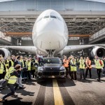 Am trăit să o vedem și pe asta! Un Porsche Cayenne Turbo S și un Cayenne S Diesel au tractat un avion Airbus A380 pe o distanță de 42 de metri, pe cel mai mare aeroport din Paris.