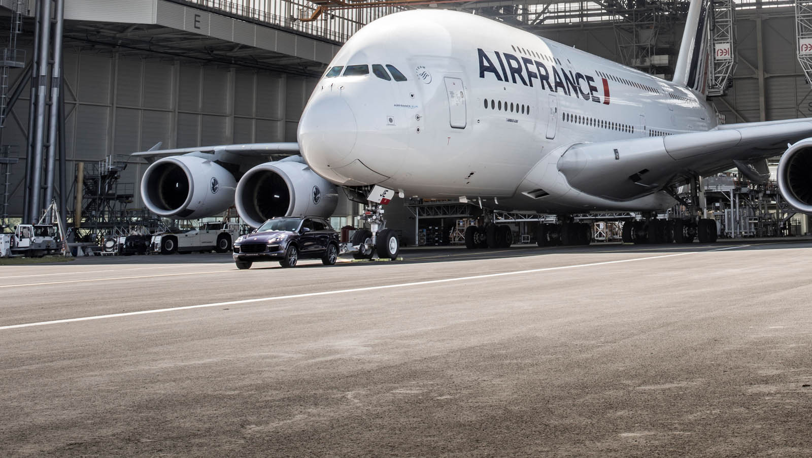 Un Airbus A380 este una dintre cele mai mari aeronave construite vreodată. Are două punți și cântărește 285 de tone, eclipsându-l astfel pe Boeing 747. Dintre avioanele civile, doar Antonov An-225 Mriya este mai mare. În ciuda gabaritului de speriat al Airbus-ului, cele două Porsche Cayenne au reușit să-și ducă misiunea la bun sfârșit.