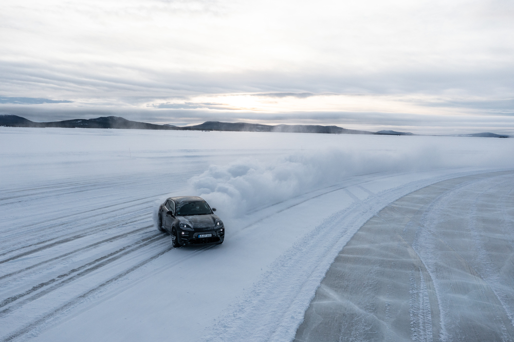 Prototipurile camuflate ale modelului Macan complet electric au parcurs peste 3,5 milioane de kilometri pe piste și pe drumuri publice. Pentru a testa interacțiunea tuturor componentelor active ale sistemului de conducere în condiții extreme, mașinile de testare au mers prin întreaga lume. Au fost acoperite toate intervalele de temperatură, de la minus 30° Celsius, în Scandinavia, până la plus 50°, în Death Valley din California. Deoarece un SUV trebuie să ruleze pe orice suprafață, a fost testat nu numai pe șosea, ci și în off-road, pe pietriș, zăpadă și gheață. Iar tracțiunea integrală care favorizează puntea din spate a modelelor Macan complet electrice a fost întotdeauna în elementul său.