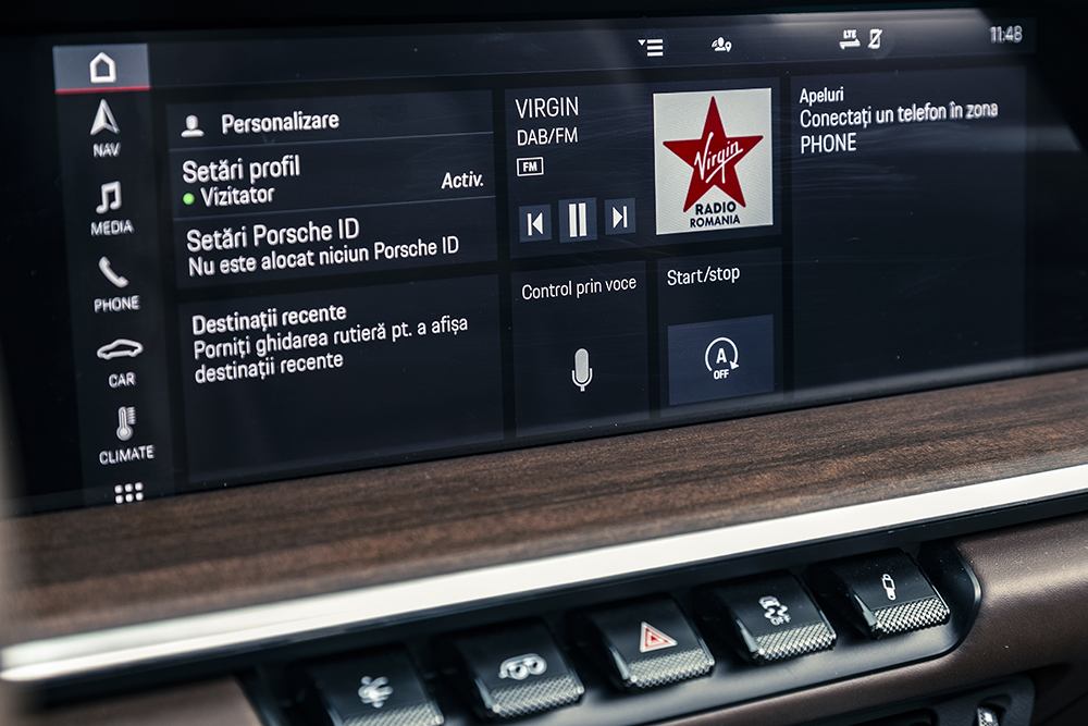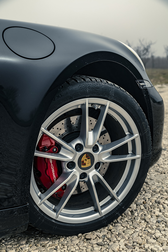 Lățimea caroseriei a crescut cu 44 mm în spate, și cu 45 în față, iar roțile au, în premieră, diametre diferite pe cele două punți: 20 de inchi pe față și 21 pe spate. Și ecartamentul s-a mărit, pentru stabilitate maximă. Dacă optezi pentru suspensia sport PASM sport, primești o gardă la sol mai mică cu 10 mm. Opțional, sunt disponibile și frâne ceramice PCCB. Cât despre direcție, aceasta are acum o demultiplicare cu 11% mai scurtă.