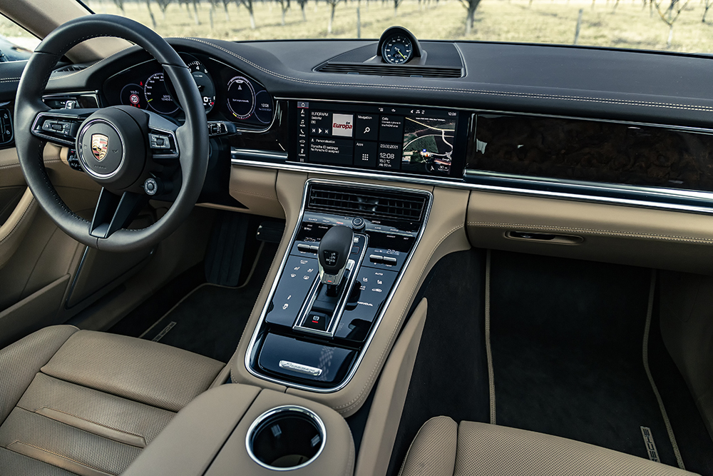 În lumea lor, simți că totul a evoluat. Panamera are o mină de sfântă, cu aureola verde și o inimă electrică de 136 CP. Condu-o normal și nici n-o s-o auzi mârâind prin țevile de eșapament, pentru că cei 400 Nm ai motorului electric sunt suficienți în cele mai multe scenarii. Și poți „să-i faci plinul“ de la surse de 7,4 kW, în mai puțin de 150 de minute. Așa te faci cu încă 45 km de rulaj fără emisii, de condus în liniște deplină, pentru că, de anul trecut, capacitatea bateriei a crescut de la 14,1 la 17,9 kWh.