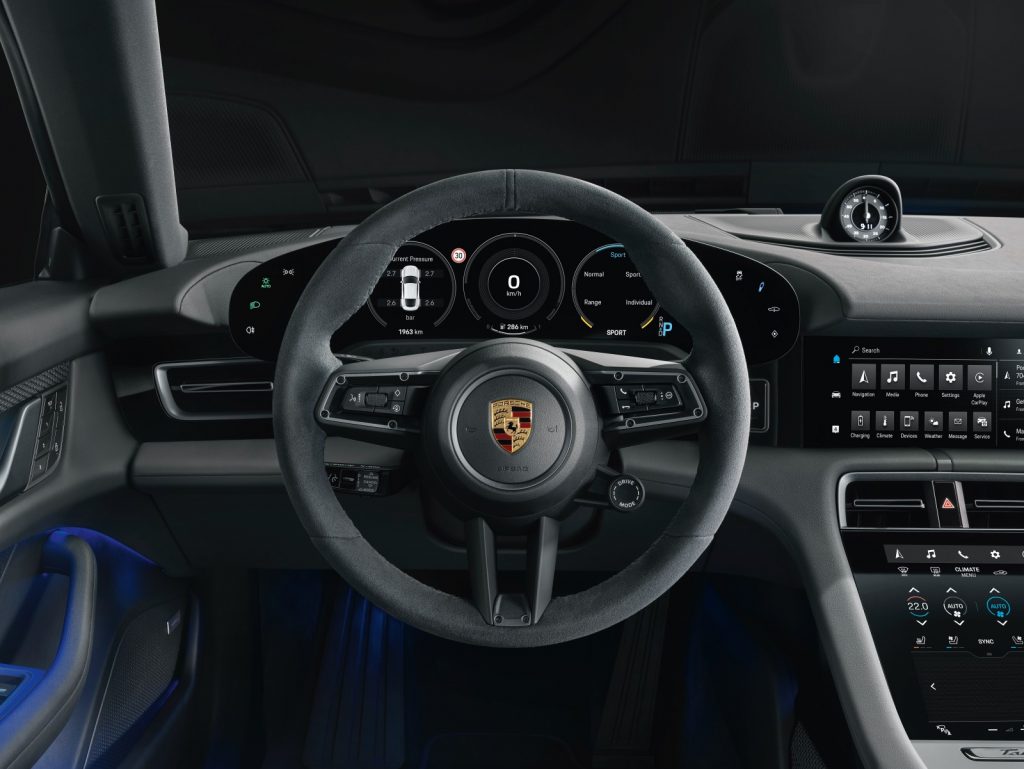Autonomia oficială anunțată pentru Porsche Taycan 4S este de 407 km cu bateria de 79.2 kWh și de 463 km cu bateria de capacitate mare.