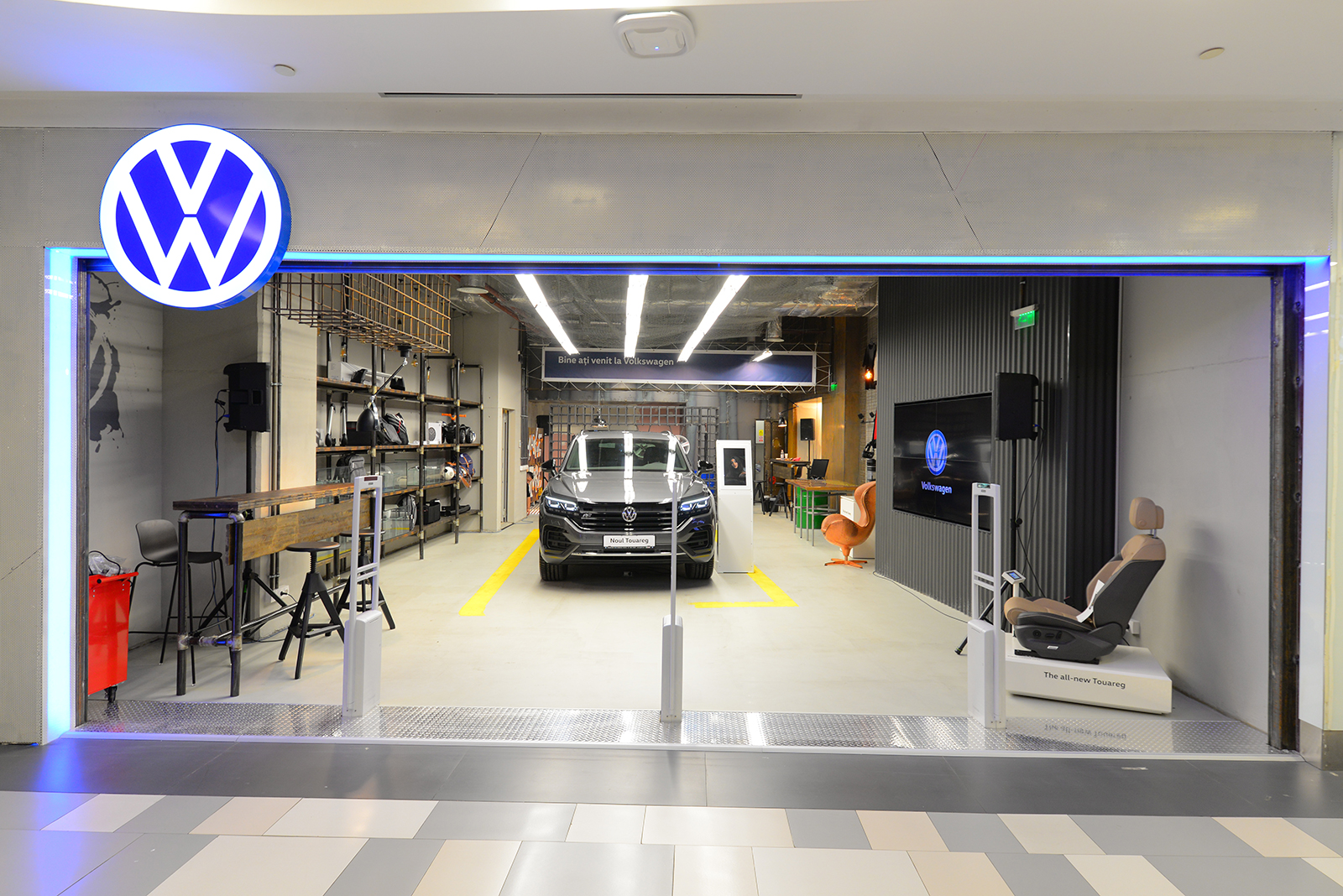 Magazinul Volkswagen le promite celor care îi trec pragul o experiență interactivă în cei 115 metri pătrați în care este expus deja noul Volkswagen Touareg.