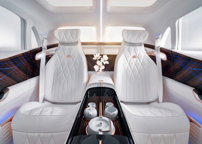 Consola centrală se extinde către spate și integrează un suport din abanos pentru un ceainic și cesti. Serviciul de ceai se retrage în consola centrală, sub un capac glisant, prin apăsarea unui buton.