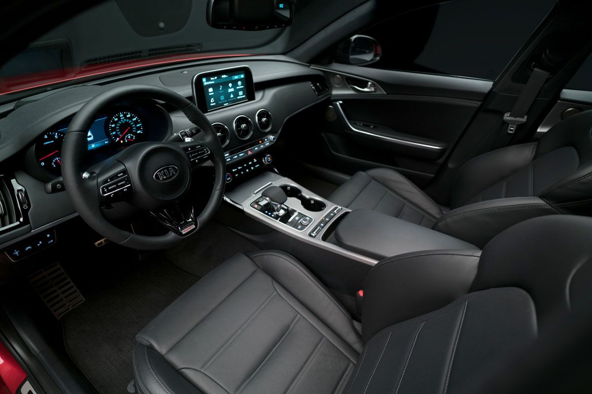 În versiune de top, Stinger vine cu ecran tactil de 8 inch și sistem audio Harman-Kardon cu 15 incinte. Mașinile cu linia de echipare GT-Line vor beneficia standard și de un head-up display. Pe lista de dotări opționale, se regăsesc tapițeria din piele, scaune și volan încălzite, dar și faruri LED.