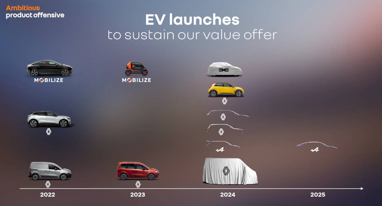 Astfel, la capitolul „Întărirea fundației unei companii competitive, tehlogizată și durabilă”, prezentarea șefului Renault a inclus și calendarul lansărilor de noi modele până în 2025.