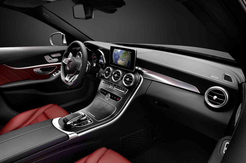 Dacă la exterior nu ne putem aștepta la multe artificii, știut fiind faptul că Mercedes-Benz mizează pe o imagine premium, rafinată, cultivată de-a lungul istoriei, la interior a fost acordată o mână destul de largă celor care s-au ocupat de dezvoltarea produsului. Respectând proporțiile, dar și orânduirea pe clasa ierarhică, Clasa C a învățat doar ce e mai bun de la recent lansata Clasa S. Materiale despre care putem afirma încă de dinainte de a intra în contact direct cu ele că sunt de cea mai bună calitate și finisaje în ton.