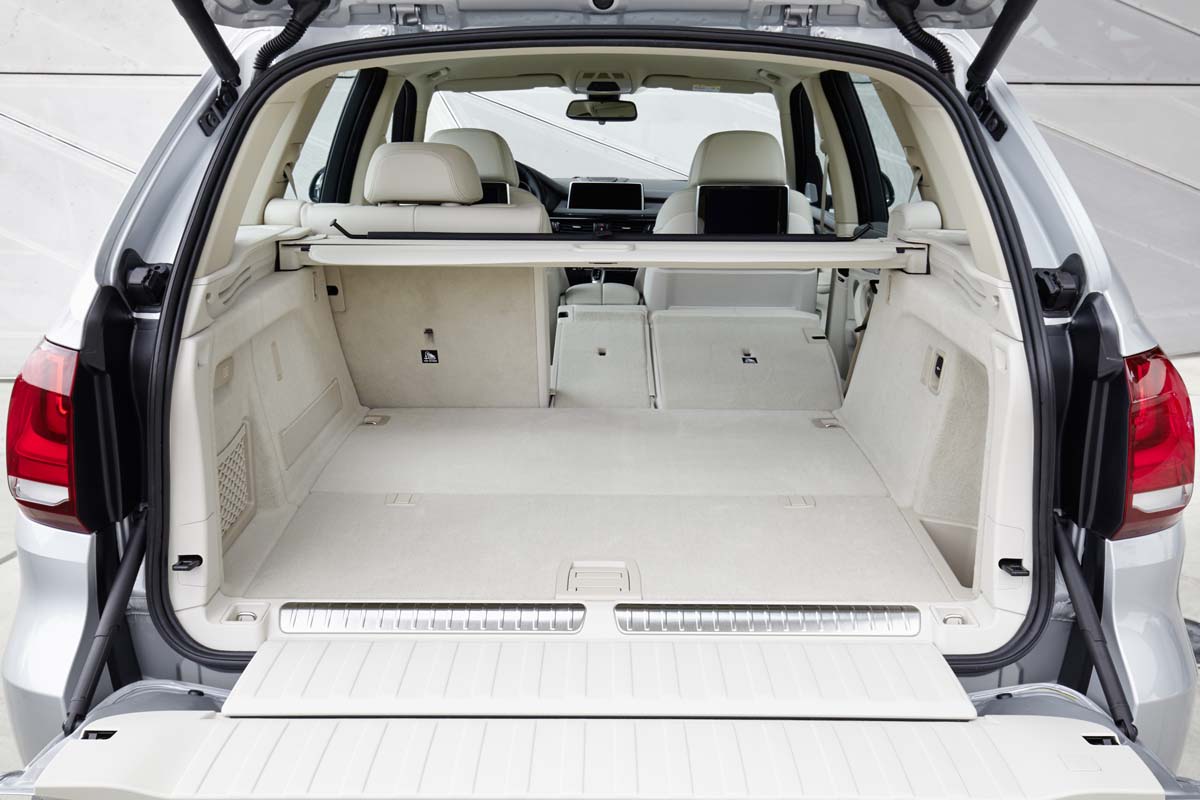 Pentru a se economisi spaţiu, acumulatorul de înaltă tensiune se află sub podeaua portbagajului, acolo unde este şi protejat bine în cazul unui accident. Cu o capacitate a portbagajului ce variază între 500 şi 1.720 de litri, un spătar al banchetei ce poate fi rabatat în trei părţi şi cu un interior ce beneficiază de un design luxos, BMW X5 xDrive40e se bucură şi de versatilitatea ridicată a unui Sports Activity Vehicle, combinată cu un interior exclusivist.