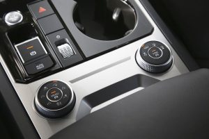 Meniurile sunt accesate din lateralul ecranului și totul este simplu și intuitiv. Apoi, pe consola centrală se află cele două controllere pentru dinamica rulării. În stânga avem controllerul pentru programele de condus cu cele șapte programe (Eco, Comfort, Normal, Sport, Individual, plus opțional Off-road și Snow) iar în dreapta controllerul pentru reglajul gărzii la sol care permite ajustarea pe patru niveluri atunci când se comandă suspensia pneumatică inclusă în pachetul Dynamic 1 alături de direcția integrală (2.738 euro).