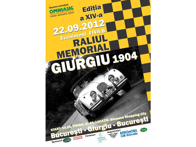 RETROMOBIL CLUB ROMÂNIA organizează sâmbătă 22 septembrie a XIV-a ediție a “Raliului Memorial Giurgiu 1904”, evenimentul cu cea mai îndelungată tradiție în calendarul vehiculelor istorice din România.