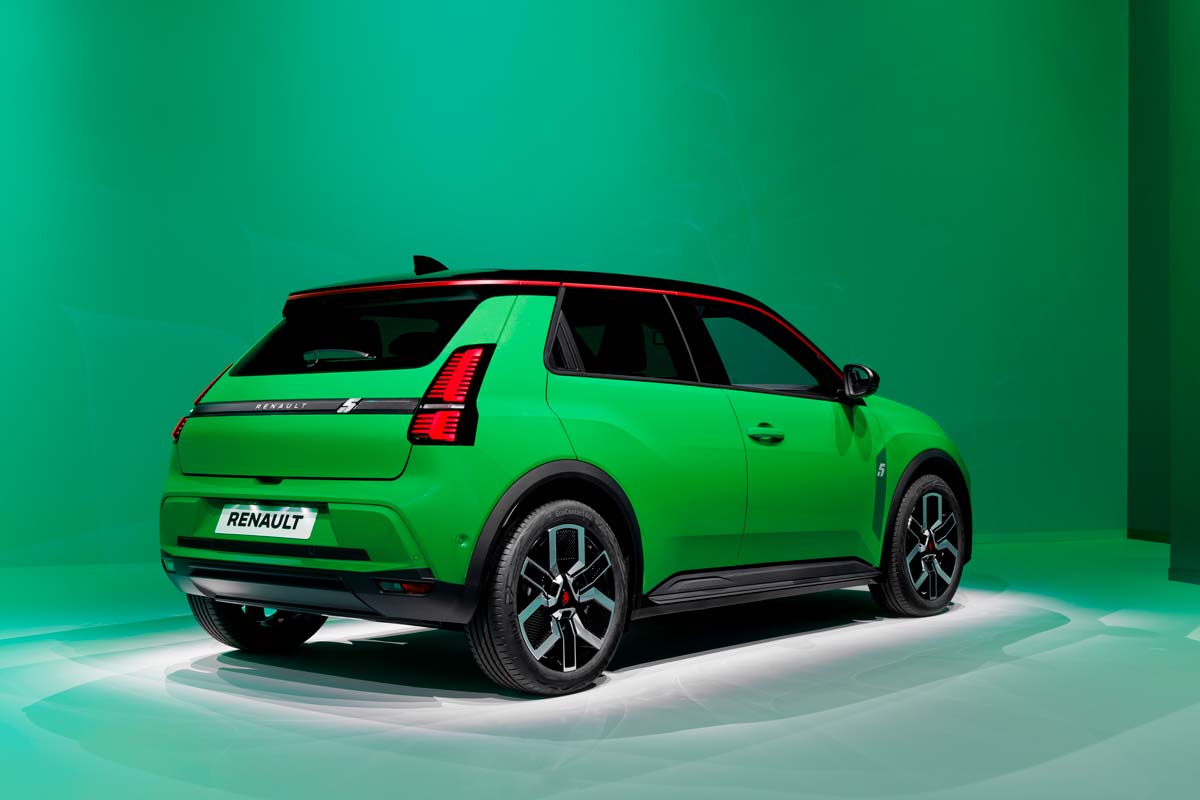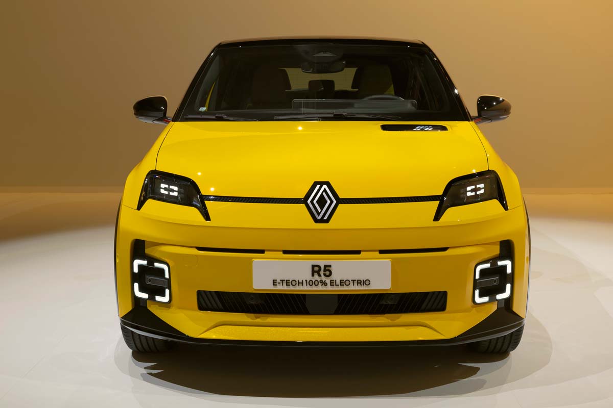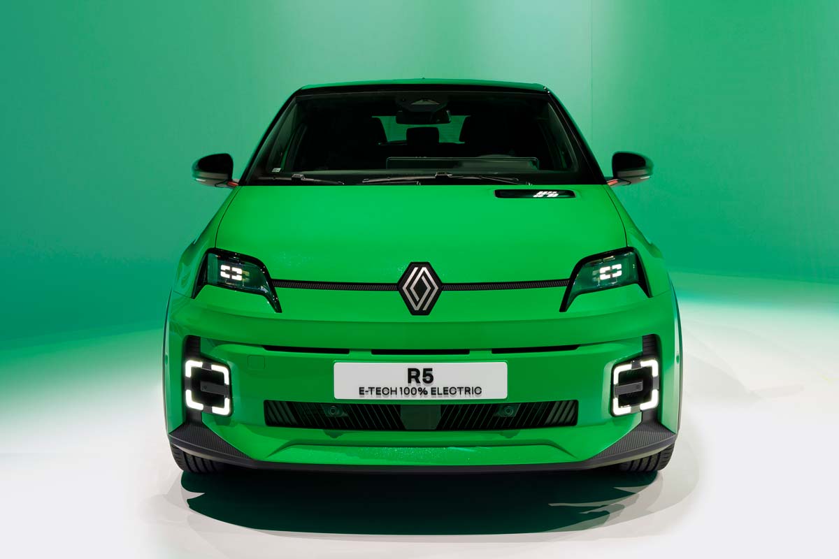 Nimic nu pare plictisitor la mașina asta! Farurile cu lumini de zi duble, în formă de dreptunghiuri rotunjite la colțuri, stopurile verticale cu semnături luminoase lamelare, jantele de 18 inchi (pe o caroserie mai scurtă de 4 m!) și gama variată de culori relevă caracterul urban al modelului. R5 este cu 9 cm mai scurt decât Clio, dar ampatamentul său e doar cu 4, profitând din plin de platforma dedicată propulsiei electrice. Este cu 6 cm mai înalt decât Clio, în principal din cauza bateriei de sub podea.