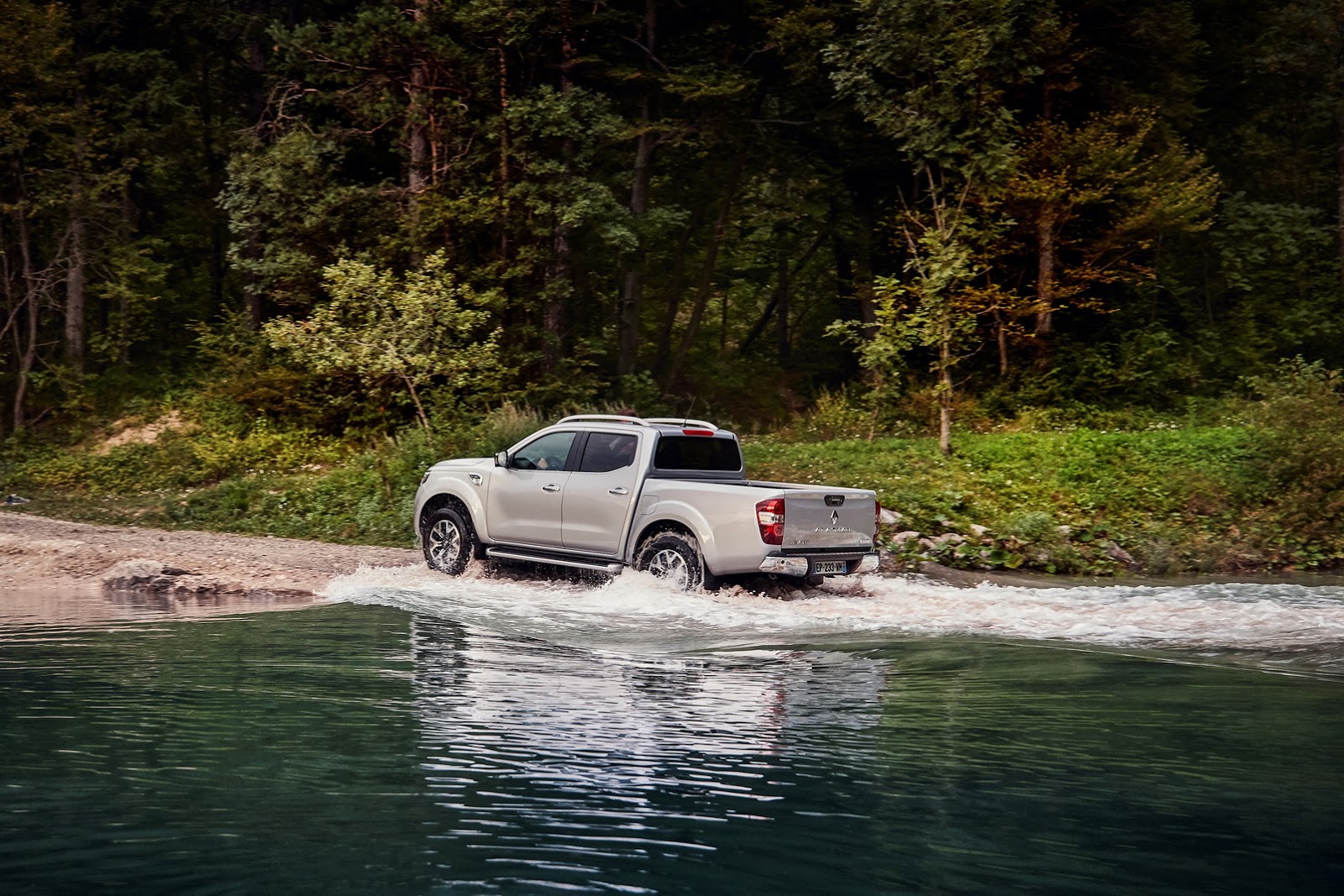 Garda la sol de 230 mm îl ajută pe Alaskan să treacă peste obstacole tipice SUV-urilor cu înclinații off-road, în timp ce capacitatea de tractare, de 3,5 tone, îl propulsează în vârful clasei. Latura practică este dată de cele patru cârlige din benă, ce se asamblează rapid pentru a ancora încărcătura.