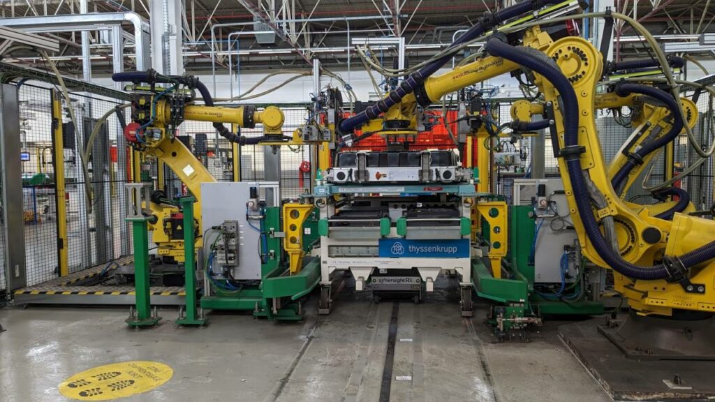 Cu o capacitate de 500 de mașini/zi, secția de montaj a uzinei din Douai nu diferă mult de cele din fabricile de mașini termice. În ciuda faptului că linia este cu totul nouă – a intrat în funcțiune în ianuarie 2022 – și flexibilă, putând transporta vehicule cu dimensiuni diferite, iar multe procese au fost automatizate, activitatea se desfășoară într-un ritm uzual. Doar cele 400 de AGV-uri (Automated Guided Vehicle) care transportă singure piese către operatori în funcție de cerințele acestora par din cu totul altă epocă.