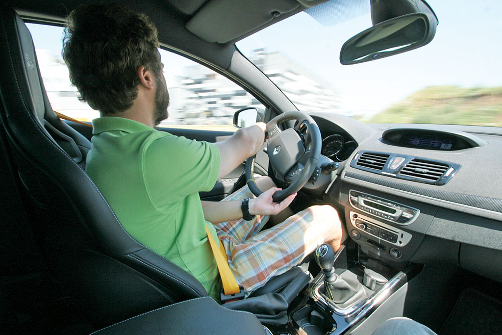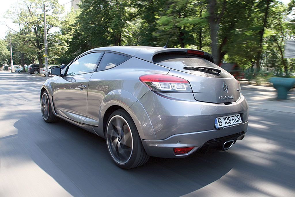 Iar dacă euforia momentului te împinge să depășești anumite limite, diferențialul mecanic cu alunecare limitată (standard în configurația Cup) te ține pe drum cam ca un boghiu de cale ferată montat pe șină. Iar frânele… e de ajuns să te gândești că dimensiunea discurilor față (340 mm) e apropiată de cea a roților bătrânei Dacii 1300, iar că pe etrier tronează arogant inscripția „Brembo“ pentru a înțelege că e bine să-ți alegi cu grijă meniul culinar înainte de-a pleca la drum cu Megane RS.