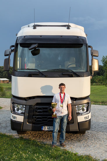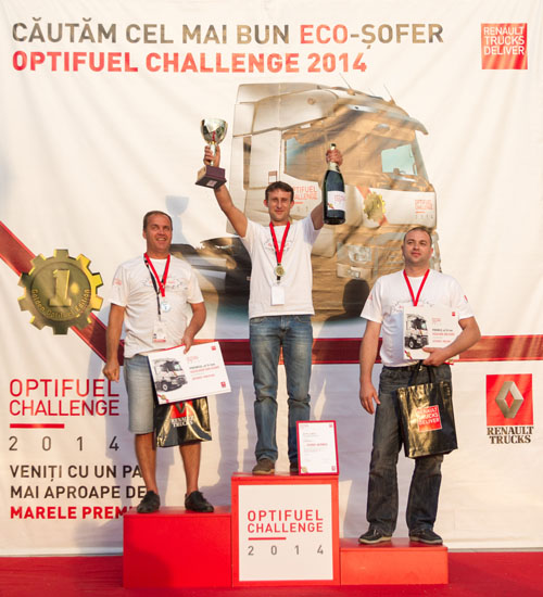 Podiumul a fost completat de George Macovei, de la Transilv Expres şi de Şerban Moisan, de la compania Şerban Transporturi, care au câştigat de asemenea vouchere de cumpărături şi vouchere de service pentru companie. Totodată, primii trei clasaţi au fost recompensaţi cu produse de merchandising Renault Trucks. Câştigătorul, Florin Olteanu, va merge în Polonia, la un curs de pregătire pentru marea finală internaţională, care va avea loc în octombrie, în Franţa. În urma cursului din Polonia şoferul cel mai bine clasat va câştiga un T 460 pentru companie timp de 6 luni şi un voucher pentru cumpărături în valoare de 4.000 de euro, iar primul clasat de la marea finală internaţională va beneficia de un camion T 460 pentru 12 luni cu toate costurile incluse pentru compania sa şi de vouchere în valoare de 8.000 de euro pentru uz personal. Premiile se pot cumula. Astfel, în cazul în care câştigătorul din Polonia va obţine cel mai bun consum şi în Franţa va pleca acasă cu vouchere de 12.000 de euro şi camionul pentru 18 luni.