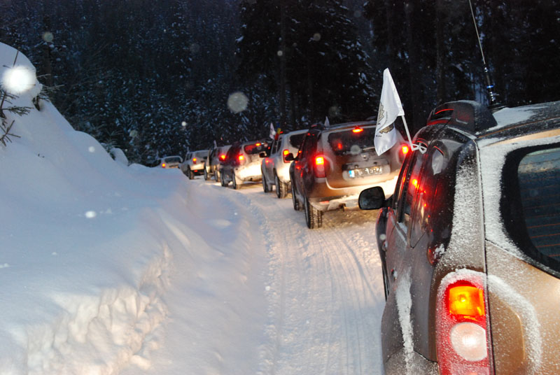 Participantii au profitat de timpul placut si de zapada in exces din zona montana pentru a testa capacitatile propriilor vehicule. În prima parte a zilei de sambata, s-au intrecut in «frumusetea » masinilor si intr-o cursa contra-cronometru pe traseu inchis si teren inzapezit. A doua parte a zilei a fost dedicata efectuarii unui traseu montan, in caravana. Destinatia aleasa a fost cabana Bolboci, situata la o altitudine de 1460 m, in Parcul National Bucegi. Drumul nu a fost lipsit de dificultati, traseul fiind strajuit de nameti si acoperit cu zapada care, cel mai adesea, masca damburi de gheata. Însa, toate obstacolele au fost depasite fara emotii de caravana de Dacia Duster din care a facut parte si un vehicul Dacia Duster 4×2, echipat cu lanturi.
