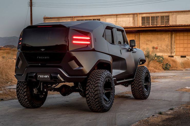 SUV-ul Rezvani respectă principiile clasice de construcție ale unui off-roader autentic, cu alte cuvinte șasiul este separat, ceea ce promite o robustețe ridicată și performanțe excelente în afara drumurilor asfaltate. Acest lucru este sugerat și de faptul că SUV-ul se bazează pe modelele militare ale firmei și pur și simplu va purta numele “Tank” – tanc, n.r. Accesul în interiorul luxos echipat este facilitat de ușile cu deschidere în sens contrar.