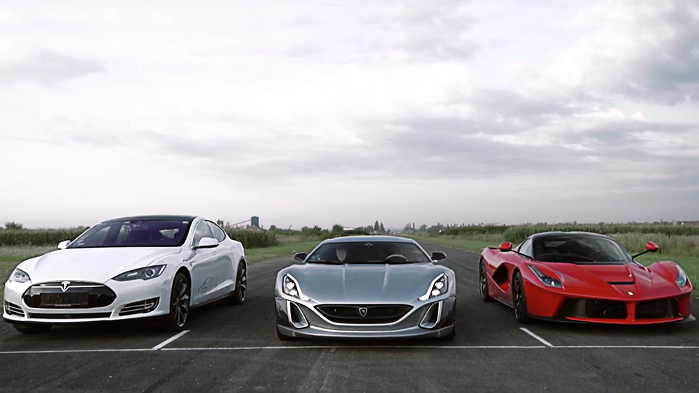 Bun. Deci avem un hypercar electric croat, capabil să atingă suta în 2,8 secunde, un hypercar hibrid italian, care demarează până la 100 km/h în 2,7 secunde și un sedan american care bate constant supercaruri la liniuțele pe sfert de milă. Care pe care?