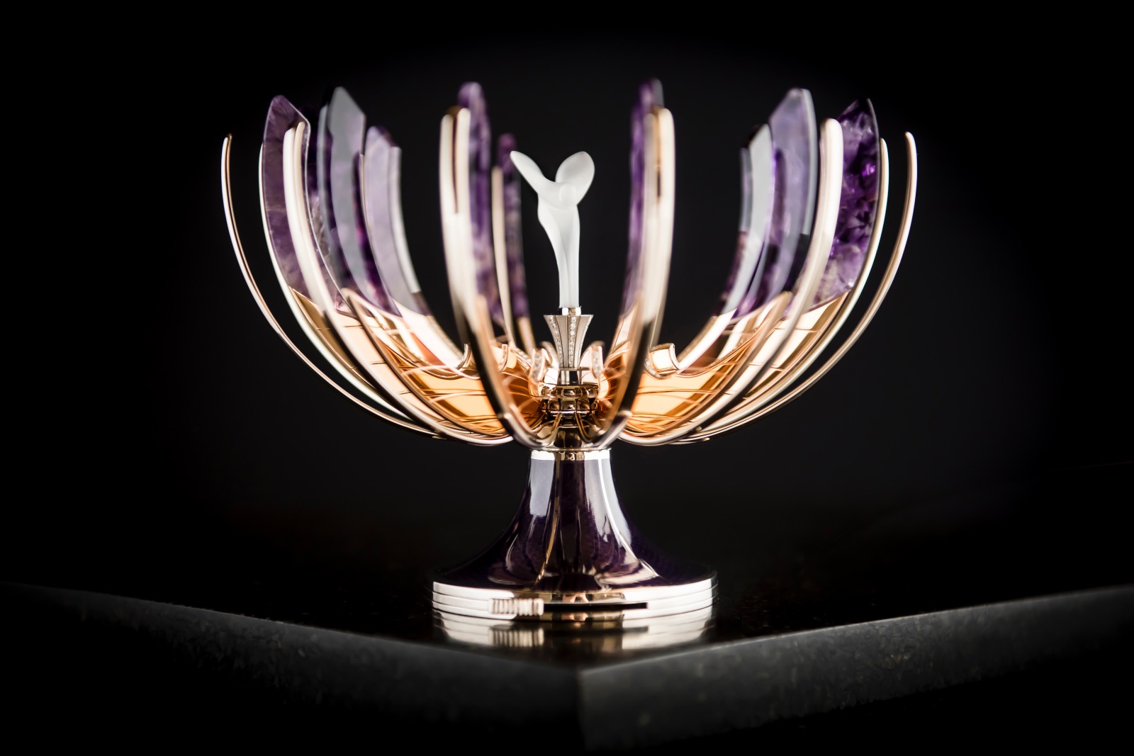 Anul trecut, Rolls-Royce a creat chiar și un ou Faberge dedicat statuetei. Statueta a fost amplasată chiar în mijlocul oului ce are o înălțime de 160 mm și o greutate de 400 grame. Platforma pe care stă statueta este manufacturată din aur alb de 18 carate, iar mini sculptura este realizată din cristal. Oul dispune și de un complicat mecanism de deschidere prin care sculptura Spirit of Ecstasy este scoasă în evidență.