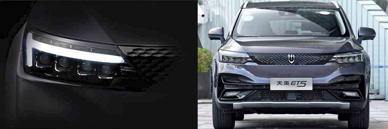 Rezervat pentru premiera din 16 decembrie, acest detaliu a devenit vizibil odată cu publicarea imaginii „teaser”. Farul și grila din aceasta corespund modelului electric Skywell ET5, un SUV produs în China.